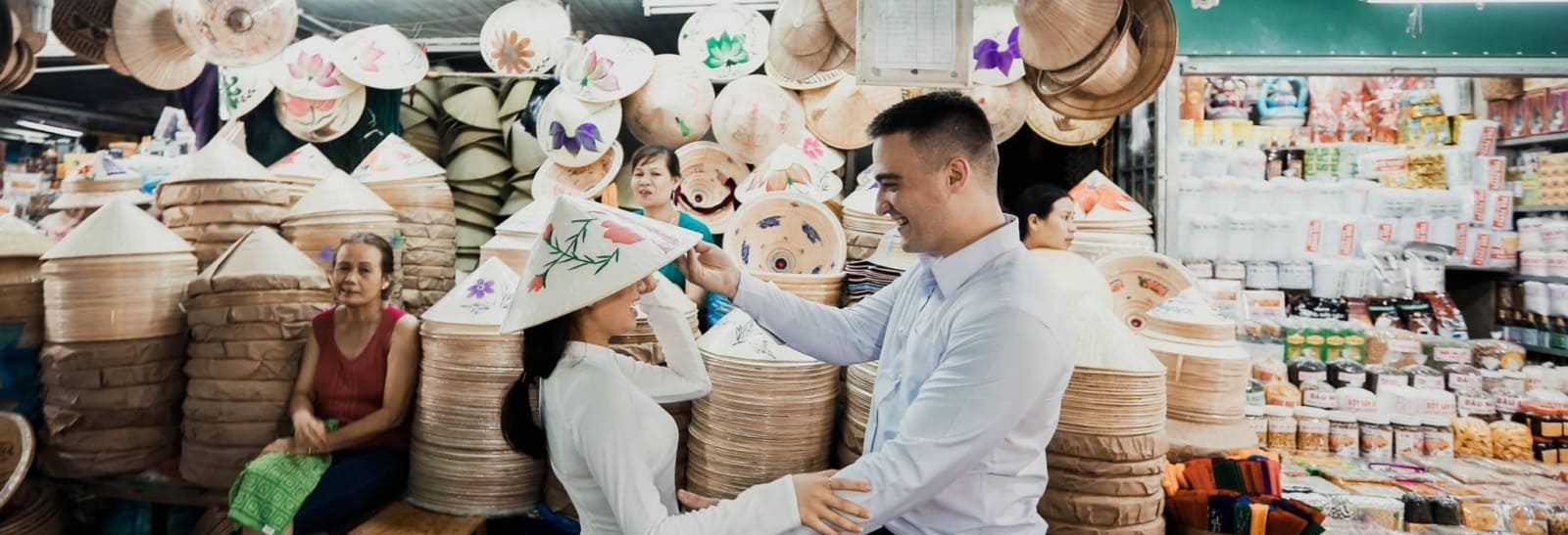 Hue is an old gem offering plenty of photogenic opportunities. After wandering top tourist attractions in this city like Imperial Citadel and tombs of Nguyen Emperors, or peaceful countrysides, most tourists spend their last days shopping. For foreigners, it would be a little challenging to find where to shop and know what to buy. In this article, you will find all your answers for shopping in Hue. I. Where to Shop in Hue? Shopping in Hue gives you a great chance to understand the local lifestyle, culture, and unique history of the city. But where are the best places to experience a real local vibe? 1. Dong Ba Market Location: Tran Hung Dao street, Hue city, Thua Thien Hue Opening hours: 3:00 am – 8:00 pm Dong Ba Market should be a top choice as it is one of the oldest and most popular places for shopping in Hue. The market is home to hundreds of stalls selling clothes, household items, handicrafts, and fresh products. You can easily find the market as it occupies a large grey building on Tran Hung Dao street with a large red sign saying “Chợ Đông Ba” (literally means Dong Ba market in Vietnamese). Covering almost 16.000 square meters, it opens from very early morning to cater to numerous local market goers. The best time to visit the market is between 8 am and 11 am when it is most crowded. The first floor features plenty of food stalls surrounding the dining section. In this area, you can enjoy many authentic Vietnamese dishes like pho, fresh spring rolls, or banh khoai (stuffed omelette) for your breakfast. It is one of the few shopping places in Hue that attract tourists to experience local lifestyle, enjoy street food, and look for souvenirs. 2. Truong Tien Plaza Location: 6 Tran Hung Dao street, Phu Hoa ward, Hue city, Thua Thien Hue Opening hours: 9:30 am – 10:00 pm Trang Tien is one of the most famous shopping malls in Hue that brings a luxurious shopping experience for travelers. Exploring the place, you can find almost anything you need, from high-end clothes to household items. The 4-storey building provides food, gaming, and shopping services for all customers. There are more than 200 brands of fashion, cosmetics, accessories, handbags, and footwear here. Among them, there are many leading international brands like Louis Vuitton, Cartier, or Burberry, etc. Moreover, you also have a chance to enjoy relaxing time in beautiful cafes and amazing restaurants inside and outside of the shopping mall. For Western visitors, it will make you feel like being at home. The store owners in the shopping mall can speak both English and Vietnamese, which helps your shopping easier and more conveniently. 3. Tay Loc Market Source: Mazevietnam Location: 209 Nguyen Trai street, Hue city, Thua Thien Hue Opening hours: 06:00 am – 10:00 pm Tay Loc Market mainly attracts Hue local people but travelers also can find several shopping places and snacks here. Along the street, there are some shops selling traditional accessories and garments. These items will be ideal souvenirs to remember the ancient and romantic beauty of Hue when coming back to your home. Compared to other markets, Tay Loc is the place where you get cheap shopping and buy some interesting souvenirs. II. What to Buy in Hue? Before shopping in Hue, it is better to have a shopping list in your mind. If you still don’t know what to buy in this poetic and charming city, you can see the below list of the most typical souvenirs. 1. Conical hat Conical hat is a symbol of Vietnam besides “Ao dai”. You can easily see this hat anywhere in the country. However, those made in Hue seem to be the most unique and special. Unlike others, they are added poems, paintings, and impressive decorations that attract not only local people but also numerous foreigners visiting the city. Maybe it is the reason why it is also called Non Bai Tho (or Poem Hat). During your trip, the hat will help to protect you from the sun and the rain. When returning home, the hat will be a great thing to remember about your wonderful trip in Vietnam. Around Hue, you can find these beautiful conical hats made from palm leaves at most local markets like Dong Ba Market, An Cuu market, or Ben Ngu market. However, the best place to buy one is Tay Ho village which is about 12 km. Well known as the mecca for this kind of hat, most girls here learn to weave interesting poems into the hat since they were 10 years old while boys help to collect the materials. 2. Sinh Folk Paintings Folk paintings are also an ideal gift for art lovers. Northern Vietnam is famous for Dong Ho paintings whereas Hue is well known for Sinh folk paintings. As its name suggests, the paintings are only made in Sinh village and have been associated with the spiritual life of locals for generations. While Dong Ho paintings reflect daily life of northern delta residents, Sinh folk paintings mainly refer to animals, objects, and characters like owners’ protectors or dummies. In terms of materials and techniques, it is quite similar to others, using natural materials to color, drawing with brushes from pineapple trees’ roots, and printing onto Do paper from woodblocks. Coming to Sinh village, you will find numerous colorful and durable paintings hanging on the walls of village houses. 3. Thanh Tien Paper Flowers If you have a chance to visit Hue on the occasion of Tet holiday, there is no reason not to buy Thanh Tien paper flowers. Before Lunar New Year, you will see skillful craftsmen busy with bamboo and paper to create impressive paper flowers. They are loved for their beauty and used to decorate altars or in religious rituals. For Hue people, they pay much attention to rituals and they believe that flowers are one of the 4 most important things in any rite. However, the weather in the city is quite harsh with a lot of sunlight and rainfall, which is not ideal for using fresh flowers. Therefore, they use paper flowers instead. Gradually, these flowers became many local people’s hobbies. It