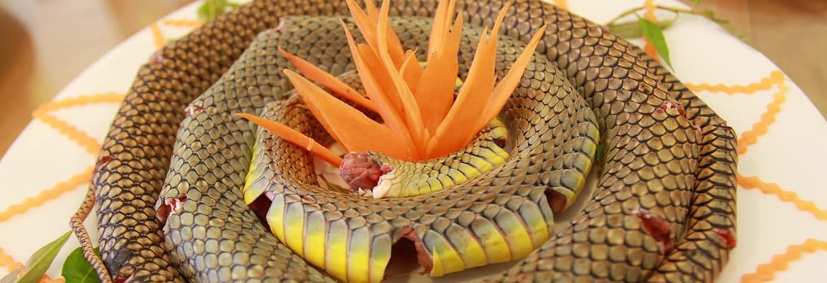 Western culture considers that eating a dog is not good, but there will be no problem with other sorts of animals, as long as they are not called pets. However, for the vast majority of people on Earth, cultural values are very different. Some weird Vietnamese food are considered a delicacy in some Asian cultures including China, Korea, Philippines, Vietnam, Laos, Cambodia, Thailand and Myanmar. Indeed, these strange food are very tasty and protein rich. May be you should try them some day if you are not vegetarian. 1. Dog Meat It is consumed in Vietnam to varying degrees of acceptability, though it predominantly exists in the North. It’s a winter food which believed to keep you extraordinarily warm on cold nights. Dog meat is eaten in a variety of ways, from grilled, stuffed in spring rolls, stir fried, to added to soups. There are multiple dishes featuring dog meat, and they often include the head, feet as well as internal organs. Dog meat restaurants can be found throughout the country. If you are in Hanoi and you are eager to try this dish, please come to a restaurant on Nhat Tan Street – Tay Ho District. Typically, a chef will choose one of seven ways to cook dog, collectively known as “cầy tơ 7 món“. You can choosesteamed dog meat, dog sausage, steamed dog in shrimp paste, ginger and rice vinegar, grilled dog meat, bamboo shoots and dog bone marrow or fried dog in lemon grass and chili. Here, you can see groups of customers who seated on mats spending their evenings on sharing plates of dog meat and drinking alcohol. Dog meat is supposed to raise the libido and sometimes considered unsuitable for women. In other words, eating dog meat can serve as a male bonding exercise. Nevertheless, it is not uncommon for women to eat dog meat. The consumption of dog meat can be part of a ritual life which usually occurring in the end of the lunar month for reasons of astrology and luck. Restaurants which mainly exist to serve dog meat may only open for the last half of the lunar month. 2. Snakes Snakes are a common novelty and relished food. You can drink the wine as well as eat the flesh on several occasions. When I visit one of my Vietnamese friends, he caught a cobra outside his front door and shared it with me on evening. Actually, there is very little meat on a cobra, so the skin is eaten as well. In the village of Le Mat, which famous for its snake restaurants, I tried snake meat in a number of ways, including in soup (both the taste and texture was like crab meat) and spring rolls (tastes like chicken). Furthermore, snake blood is supposed to be healthy with many benefits as well as a natural form of Viagra. So what is its taste like? I was surprised that tasting a fried meat actually a bit like custard. There is no fat and extremely lean and tender. After trying snake, you will surely be back for more. 3. Lizards and Frogs (Best Grilled) This food are standard fare in Phan Thiet. Some of my friend said that he had never tried frog until he came to Vietnam, but now he like it a lot. If you ever order a frog dish in Vietnam, pay attention to the bones! During rainy season, Vietnamese people catch toads and boil them up. They merely cut out the stomach organ and eat the rest-skin, guts and all. 4. Trung Vit Lon I watched my friends eating trung vit lon for many months before trying it myself. These fertilized duck eggs are allowed to partially develop and then, they are hard-boiled. Crack the top off, suck out the juice and then spoon out the colorful morsels with pinches of pickled carrots, garlic, radish, turnip, some mint leaves, and a dash of salt and pepper. Experience had taught me that in Vietnam, food nearly always tastes better than it looks. When traveling, you always want to experience the culinary delights that you never see at home. Eating different and unusual food is a big part of what makes your holiday memorable… Share: Most Popular Vietnamese Silk Painting Vietnamese Wedding Ceremony Tradition “Banh Chung” (Chung Cake) – The Soul of Vietnamese New Year! Mid-autumn Festival in Vietnam (Full Moon Festive) Vietnamese Traditional Family Values!