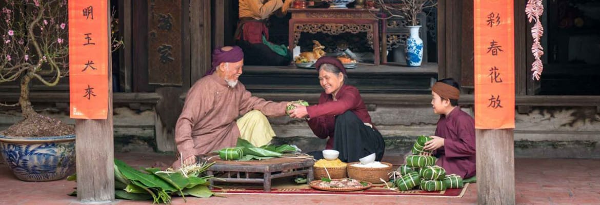 The festival is the best epitomizes Vietnam’s cultural identity. Meaning of Vietnamese New Year The festival which best epitomizes Vietnam’s cultural identity is Vietnamese New Year or Tet. “Tet” is the phonetic deformation of “Tiet”, a Sino Vietnamese term which means “Joint of a bamboo stern” and in a wider sense, the “beginning of a period of the year”. The passage from one period to the next may cause a meteorological disturbance (heat, rain, mist) that must be exercised by ritual sacrifices and festivities. There are many Tets throughout the year (Mid-autumn Vietnamese New Year, Cold Food Vietnamese New Year, etc.). But the most significant of all is “Vietnamese New Year”, which marks the Lunar New Year. Vietnamese New Year occurs somewhere in the last ten days of January or the first twenty days of February, nearly halfway between winter solstice and spring equinox. Although the Lunar New Year is observed throughout East Asia, each country celebrates Vietnamese New Year in its own way in conformity with its own national psyche and cultural conditions. For the Vietnamese people, Vietnamese New Year is like a combination of Western Saint Sylvester, New Year’s Day, Christmas, Easter and Thanksgiving. It is the festival of Purity and Renewal. Vietnamese New Year Customs 1. Clean and decorate the home Homes are often cleaned and decorated before New Year’s Eve. Children are in charge of sweeping and scrubbing the floor. The kitchen needs to be cleaned before the 23rd night of the last month. Usually, the head of the household cleans the dust and ashes (from incense) from the ancestral altars. It is a common belief that cleaning the house will get rid of the bad fortunes associated with the old year. Some people would paint their house and decorate with festive items. 2. Literally means “getting new clothes” This is often the most exciting part of the Vietnamese New Year among children. Parents usually purchase new clothes and shoes for their children a month prior to the New Year. However, children cannot wear their new clothes until the first day of the New Year and onward. The best outfit is always worn on the first day of the year. 3. Farewell ceremony for the Kitchen Gods (Ong Tao) Seven days (the 23rd night of the last lunar month) prior to Tet, each Vietnamese family offers a farewell ceremony for Ong Tao to go up to Heaven Palace. His task is to make an annual report to the Jade Emperor of the family’s affairs throughout the year. 4. Lunar New Year’s Eve However, in a literal translation, it means “Passage from the Old to the New Year”. It is a common belief among Vietnamese people that there are 12 Sacred Animals from the Zodiac taking turn monitoring and controlling the affairs of the earth. Thus, Giao Thua (New Year’s Eve)is the moment of seeing the old chief (Dragon for 2000) end his ruling term and pass his power to the new chief (Snake for 2001). Giao Thua is also the time for Ong Tao (Kitchen God) to return to earth after making the report to the Jade Emperor. Every single family should offer an open-air ceremony to welcome him back to their kitchen. 5. The Aura of the Earth Giao Thua is the most sacred time of the year. Therefore, the first houseguest to offer the first greeting is very important. If that particular guest has a good aura (well respected, well educated, successful, famous, etc.), then the family believes that they will receive luck and good fortune throughout the year. The belief of xong dat still remains nowadays, especially among families with businesses. 6. Apricot flowers and peach flowers Flower buds and blossoms are the symbols for new beginning. These two distinctive flowers are widely sold and purchased during Tet. Hoa Mai are the yellow apricot flowers often seen in Southern Viet Nam. Hoa Mai are more adaptable to the hot weather of southern regions, thus, it is known as the primary flower in every home. Hoa Dao are the warm pink of the peach blossoms that match well with the dry, cold weather from the North. Tet is not Tet if there is no sight of Hoa Mai (south) or Hoa Dao (north) in every home. 7. Giving away red envelopes (filled with lucky money) This is a cultural practice that has been maintained for generations. The red envelopes symbolize luck and wealth. It is very common to see older people giving away sealed red envelopes to younger people. Reciprocally, the older ones would return good advice and words of wisdom, encouraging the younger ones to keep up with the schoolwork, live harmoniously with others, and obey their parents.This greeting ritual and Li Xi is also known as Mung Tuoi, honoring the achievement of another year to one’s life. 8. Making Offers for the Ancestors This ceremony is held on the first day of the New Year before noontime. The head of the household should perform the proper ritual (offering food, wine, cakes, fruits, and burn incense) to invite the souls of the ancestors to join the celebration with the family. This is the time families honor the souls of their ancestors and present the welfare of the family. One of the most traditional special foods for New Years (Tet) of Vietnamese is Banh Chung or sticky rice cake (Chung cake). Banh Chung is made of sticky rice, pork meat and green bean, every ingredient is wrapper inside a special leaf which calls Dong. Making the Banh Chung requires care and precision in every step. The rice and green bean has to be soaked in water for a day to make it stickier. The pork meat is usually soaked with pepper for several hours. Squaring off and tying the cakes with bamboo strings require skillful hands to make it a perfect square. Banh Chung is a must among other foods to be placed on the ancestors’ altars during Tet holiday. In the old time, one or two days before Tet, every family prepares and cooks the Banh Chung around the warm fire. It is also the time for parents to tell their children folklore stories. Nowadays, families which l