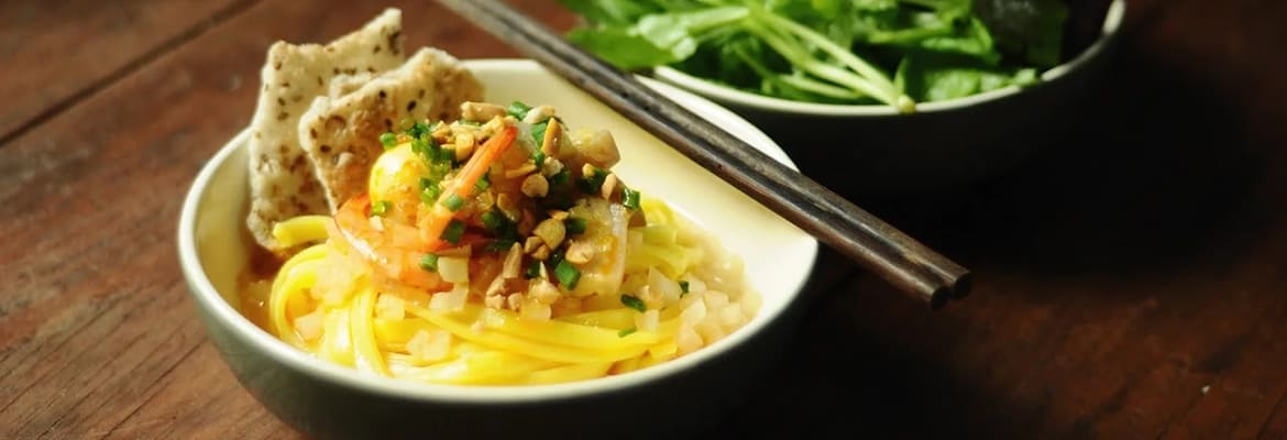 Knowing Vietnamese noodles can be extremely helpful, as “pho” is to Hanoi and beef rice noodles is to Hue, Quang noodles is very popular in Quang Nam and Da Nang, and also one of worth-trying Vietnamese foods. Quang noodle soups differ than most normal noodle soups in that the soups have just enough broth to barely cover the noodles. Unlike other Vietnamese noodle soup bowls whose broth will cover the noodles almost completely, Quang noodle broth is barely enough to slurp during the meal. If you do not eat a Quang noodle bowl fast enough, the broth will generally quickly be soaked up by the noodles. Quang noodle soups are generally pork and dried shrimp broth based, although some regional and family recipes will use chicken and even duck. What makes Quang noodle soups unique is the richness of the broth, the lack of it and the crushed peanut toppings on the noodles. The mystery of Quang noodle is in that pot above. This is ‘nuoc sot mi quang’ or Quang noodle sauce. This makes the stock slightly sweet and a smidgen spicy. This dish’s ingredients include rice, vegetables and meat. After being soaked in water, the rice is ground to a fine powder and made into attractive smooth white noodles. Accompanying vegetables are water morning-glory, cress, young banana flowers and herbs. Especially, the famous Tra Que savory of Quang Nam Province will give the dish more flavour. You can use pork, chicken, fish, crab or shrimp to make the broth. If chicken is chosen, the meat is separated, seasoned and stir-fried while the bones are stewed. Finish the stock by adding cooked chicken meat. There are many Quang noodle restaurants in Quang Nam and Da Nang. Each area is famous for one certain recipe. For example, Thanh Chiem Village in Dien Ban District, Quang Nam Province is known for shrimp noodle, while chicken noodle is at its best in Tuy Loan, Hoa Vang District, Da Nang City. A traditional version says: “I make for you, darling, green tea and Quang noodles to express my feelings”. Thus, you can visit a Quang noodle kiosk in Danang City to enjoy the typical flavor of the soups, for instance: Ngan Quang Noodle at 108 Dong Da Street, Lu Quang Noodleat Ham Nghi Street, Vi Quang Noodle at 155 Trung Nu Vuong Street and so on. Share: Most Popular Vietnamese Silk Painting Vietnamese Wedding Ceremony Tradition “Banh Chung” (Chung Cake) – The Soul of Vietnamese New Year! Mid-autumn Festival in Vietnam (Full Moon Festive) Vietnamese Traditional Family Values!