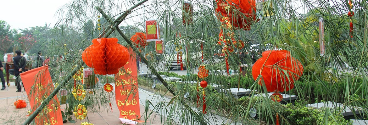 Tet Nguyen Dan is the Lunar New Year Festival and is the most important Vietnamese holiday. Tet is the celebration of the beginning of spring as well as a new year. It is the time for family reunions, exchanging gifts, best wishes. Planting a New Year tree or “Cay Neu”, Lunar New Year Pole, is also a Vietnamese custom which is part of the springtime Tet Festival. On the days before Tet, Vietnamese families plant a “Cay Neu”, which is an extremely tall bamboo tree in front of their homes. The bamboo pole stripped of its leaves except for a tuft on top so that it can be wrapped or ornamented with good luck red paper. According to famous legends in the Vietnamese culture, the red color scares off evil spirits and the tree is supposed to ward off the evil spririts during absence of Tao Quan (the Kitchen Gods) who leave the family at this time to visit the palace of the Jade Emperor. “Cay Neu” are decorations similar to Christmas tree that is displayed in various cultures. Bows, arrows, bells and gongs are hung on the treetop with the hope that all the bad luck of the past year will be chased away and everyone will have a happy New Year. Legends have it that long long ago, humans and devils co-inhabited the earth. The devils overwhelmed the former and invaded their land. Buddha told the devils: “I will hang my cassock on top of the bamboo, and wherever the shadow falls is Buddha’s land, and you devils must give it to men.” The devils agreed. So after planting the bamboo, Buddha flung his robe to the top and made the bamboo higher by means of magic; as a result, the cassock overshadowed the whole land and the devils were chased to the East Sea. Then the devils prayed to Buddha for permission to return to the mainland for a three day visit to their ancestors’ tombs on the occasion of Tet. For this reason, Neu is often planted on this occasion with green leaves, an eight sign amulet and earthen bells hung from its top. Lime powder is scattered round its base to allow the painting of cross-bows and arrows to chase away the devils or keep them at bay. The shadow of Neu symbolizes the land acquired by the men in the legend. The sounds of small bells and gongs on Neu remind us of man’s right to own the land and the bows and arrows tell us that they were once the weapons used to fight off the devil. Cay Neu is ceremonially removed after the seventh day of Tet. This is the last ritual, which brings an end to the New Year celebrations. >> Check out: Longevity Custom Features Vietnamese Native Culture Share: Most Popular Vietnamese Silk Painting Vietnamese Wedding Ceremony Tradition “Banh Chung” (Chung Cake) – The Soul of Vietnamese New Year! Mid-autumn Festival in Vietnam (Full Moon Festive) Vietnamese Traditional Family Values!