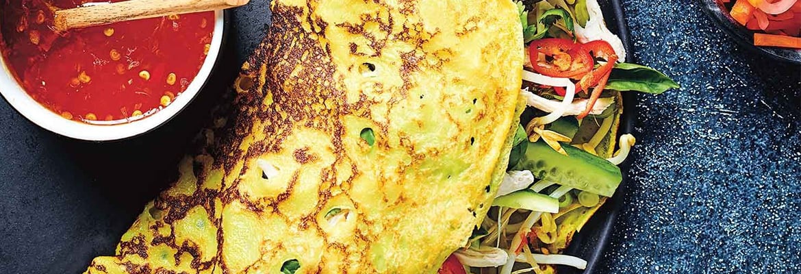 “Banh xeo” is Vietnamese style crepe with whole shrimp, thinly sliced pork and bean sprouts. What is Banh Xeo? Like the salad roll, the “banh xeo” is a do-it-yourself dish that involves the messy but delicious process of wrapping the crepe in lettuce with cilantro and basil. Though the filling might fall out on your table, you will be completely lost in the crispy, warm combination of lettuce and crepe, and the attentive staff will happily clean up after you. Different Styles of “Banh Xeo” “Banh xeo” is prepared differently throughout the country. Tourists traveling about in Vietnam are sure to encounter a different recipe, and sometimes even a different name, for “banh xeo” depending on which region and province they are visiting. These are a pale yellow spicey Vietnamese style crepe. One piece on the bottom, and another on top encase what is usually a salad consisting of been sprouts, prawns, boiled pork, taro and carrot. Drenched in fish sauce, and you have a deliciously messy slice of fine pleasure. The dish is round, and you cut it into slices, like a pizza, so it resembles a triangle on the main platter, but usually by the time it arrives on your plate, it could resemble anything really. In the Southern region, the “banh xeo” is the size of a large dish and yellow in color due to the employment of turmeric powder. The Southern people always add coconut milk to the rice flour to make the crepe extra delicious. The crepe is stuffed with bean sprouts, mung beans, shrimp and pork. A sweet and sour fish sauce and fresh vegetables are used as accompaniments. In the Central region, “banh xeo” cooks make a smaller crepe that is white in color. In Hue, the crepes are called “banh khoai”, which is similar to “banh xeo”, but smaller in size and stuffed with fennel, sour star fruit, green banana and a thick soy sauce. In addition to selling the crepes to patrons, vendors also prepare them en masse for birthday parties and festivals. Northern preparations of “banh xeo” are similar to the ones down south, but include special fillings like slices of Indian taro and manioc. In some regions, “banh xeo” is prepared thick, but Southern crepes are characteristically thin, crispy and served fresh out of the frying pan. The secret to extra-thin crepes is a deep frying pan and a quick wrist to coat the frying pan with the batter before it starts to set. Where to Eat “Banh Xeo” in Hanoi and Ho Chi Minh City? In Hanoi, there are a lot of addresses for you to enjoy “banh xeo”, such as 22 Hang Bo Street, “Quan Ngon” restaurant at 12 Phan Boi Chau Street or “Chin Tham” restaurant on Thai Ha Street. In Ho Chi Minh City, southern-style “banh xeo” can be found at Banh Xeo 46A on Dinh Cong Trang Street, District 1 or An la ghien Restaurant at 54A Nguyen Van Troi Street, Ward 15, Phu Nhuan District. Those seeking a meatless version of “banh xeo” can find them at vegetarian restaurants on An Lac Restaurant, 175/15 Pham Ngu Lao Street, District 1, and Thien Nguyen Restaurant, 174 Calmete street, District 1. Share: Most Popular Vietnamese Silk Painting Vietnamese Wedding Ceremony Tradition “Banh Chung” (Chung Cake) – The Soul of Vietnamese New Year! Mid-autumn Festival in Vietnam (Full Moon Festive) Vietnamese Traditional Family Values!