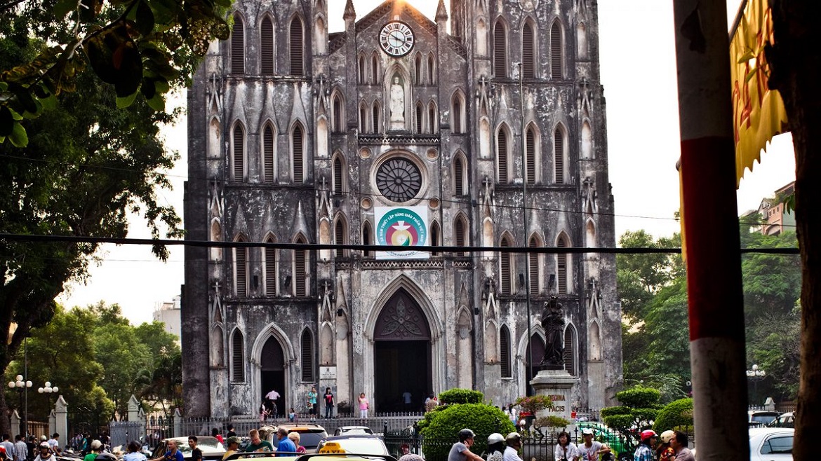 St Joseph’s Cathedral, or “The Big Church” familiarly called by the locals, is one of the first structures constructed by French colonists during their expansion in Indochina and still intact in Hanoi after two fierce wars. In spite of fierce fights destroying almost parts of Hanoi, St Joseph’s Cathedral is still in good condition. Today, it becomes a historical attraction in Hanoi which remains the image of the beauty of the old Hanoi and makes an impression on travelers by its ancient beauty inside the bustling capital. Location: 40 Nha Chung street, Hang Trong ward, Hoan Kiem district, HanoiExterior VisitsOpen: 24/7 for exterior viewing and photographyBest time: Early morning or late afternoon for optimal lightingInterior Access & Mass ScheduleWeekdays: 5:30 AM and 6:15 PMSaturday: 6:00 PMSunday:Morning: 5:00 AM, 7:00 AM, 9:00 AM, 11:00 AMEvening: 4:00 PM, 6:00 PM, 8:00 PMSpecial Ceremony: March 19th annually Contents ToggleHistory of St Joseph’s Cathedral1. Origins and Construction (1884-1887)2. French Colonial Era3. Post-Colonial PeriodArchitecture and Structure1. Exterior2. InteriorWhat to See and Do in St Joseph’s Cathedral1. Participating in a Ceremony2. Christmas at St Joseph’s Cathedral3. Checking in St Joseph’s Cathedral4. Lemon Tea – a Specialty in St Joseph’s CathedralHow to Get to St. Joseph’s CathedralTips on Visiting St. Joseph Cathedral History of St Joseph’s Cathedral 1. Origins and Construction (1884-1887) Built on the former site of Bao Thien Pagoda Initially constructed in wood Permanent structure built with brick and concrete Designed to mirror Notre Dame de Paris Completed in 1886, making it Hanoi’s oldest church St Joseph’s Cathedral boasts a soaring facade that faces a little plaza 2. French Colonial Era Served as North Vietnam’s Catholic center Hosted regular religious ceremonies Played dual role as religious center and revolutionary refuge Significant influence on local Catholic community 3. Post-Colonial Period Closed after French withdrawal in 1954 Reopened for Christmas 1990 Current status: Active Roman Catholic cathedral In front of the cathedral is the statue of Mother Maria The church was said to look like a small simulation of Notre Dame de Paris with multiple representative features of Gothic Revival architecture. Did you know: Saint Joseph’s Cathedral is the oldest church in Hanoi, established in 1886 by the French. Architecture and Structure 1. Exterior The church brings an ancient and peaceful beauty inside bustling Hanoi. It has a length of 64,5 meters, a width of 20,5 meters. The facade consists of two square bell towers with a height of 31,5 meters and a big clock, which looks like in the Notre Dame de Paris. On the top is a stone cross. In front of the church, there is a statue of Mother Maria made of copper and around are decorated with iron fences, flowers, and trees. The exterior walls of the church were made of brick and plastered. After a long time, the fierce fights and the time left historical marks on them. Saint Joseph’s Cathedral – a Roman Catholic cathedral 2. Interior St Joseph’s Cathedral is a typical structure of Gothic architecture in Vietnam, which became very popular in Europe from the middle of the eighteenth century. St Joseph’s Cathedral was designed with colorful tall glass windows and high domes, around are pictures about Jesus Christ. Glass stained pictures inside Saint Joseph’s Cathedral Hanoi Interior of the Notre Dame de Paris of Hanoi In the main court, a 2 meter-in-height St Joseph’s terracotta statue is put on the center. Below are long brown wooden rows of seats lining up to the door for the Catholics in ceremonies. What to See and Do in St Joseph’s Cathedral 1. Participating in a Ceremony If you are not Catholics and curious to know how a Catholics ceremony happens? Come to St Joseph’s Cathedral on the weekend and you will have an exciting experience. All ceremonies in this church on the weekend are big and formal, the priest will read and explain the bible, organize baptisms, ablutions for Catholics. 2. Christmas at St Joseph’s Cathedral At Christmas, the church is decorated sparklingly and becomes a place attracting many not-being Catholics and young people in Hanoi. There are also a lot of entertainment activities held at the church and they are suitable for family, friends or dating couples to take part in. Christmas celebration at St Josephs Cathedral (source: Zingvn) 3. Checking in St Joseph’s Cathedral St Joseph’s Cathedral with its European beauty becomes a wonderful place of taking photos in Hanoi, in general, and the Old Quarter area, in particular. Nowadays, there are couples choosing the church to take wedding photos and students choosing it to take yearbook photos. 4. Lemon Tea – a Specialty in St Joseph’s Cathedral It is a pity to miss lemon tea when you have an opportunity to visit St. Joseph’s Cathedral. Just a cup of tea, sitting on the pavement, under the cool green tree canopy, you can gather and chat with friends, enjoy some street foods and see the beauty of the church. Lemon tea – the famous drink outside the church for the youth (Source: Kytrangho) How to Get to St. Joseph’s Cathedral The cathedral is in the center of Hanoi, at the intersection of three streets: Nha Chung Street, Ly Quoc Su Street, Nha Xa Street, so it is easy to get there. You can go to St Joseph’s Cathedral by bus, by motorbike or on foot. If you go by bus, there are some buses going across there such as bus number 9, number 14, number 34, number 33, and so on. The cathedral is near Hoan Kiem Lake, only 5 – 10 minutes’ walk from the statue of King Ly Thai To. Tips on Visiting St. Joseph Cathedral A camera or smartphone is necessary if you want to take some pictures there. If you visit in summer, remember sunscreen, sunglasses, a hat or umbrella (because in summer in Hanoi, there are often sudden rains in the afternoon or at night), and anti-bugs spray. Aro