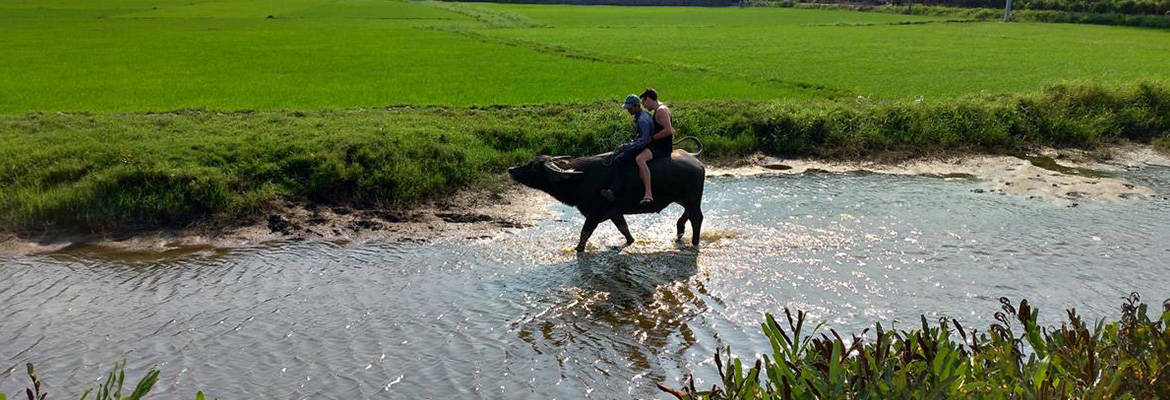 Among the famous tourist sites in Vietnam, Hoi An old town has always been one of the most significant places for foreign travelers to hang out and have fun. Not only being attractive for its ancient, historic and poetic beauty, which represents perfectly the proud culture and history of the S-shaped country, but Hoi An also draws a large number of tourists also for its interesting and unique entertainment activities – one of them is riding a water buffalo in Hoi An. Water buffalo is a familiar animal for farmers in the countryside, and riding it will help visitors understand a lot more about the customs and daily life of Vietnam. Why is the Water Buffalo the National Animal of Vietnam? Buffalo is an animal of the Bovidae species, living mostly in Asian countries and has long become a familiar image of farm work and countryside life in Vietnam. Although not officially, for as long as one can remember, the buffalo has been considered as one of the national animals of the beautiful S-shaped country. Buffalo is the friendly and indispensable animal of the Vietnamese, mostly in the countryside. Being known as the agriculture nation, farm work takes a specific and important role in the development of Vietnam. Throughout the years, the buffalo has proven itself to be useful and beneficial when it can pull plows in the rice fields, making the farming process become so much easier. When harvesting crops, buffalo is also a trustworthy supporter who helps carrying heavy products and loads for its owners. Traveling to the countryside of Vietnam, tourists will immediately see buffalos almost everywhere, helping farmers with their works or just simply standing on the side to keep them company. In a nation that rice being the main export product like Vietnam, buffalo is undoubtedly the most essential animal. Some may wonder why hasn’t the buffalo been replaced by modern technologies, given the fact that science is getting more and more developed. The reason is that the Vietnam countryside has various fields with special topographic and different sizes, and machines will only be able to work in large fields and unable to work in small and narrow spaces. Not to mention, buying modern machines takes lots of money which Vietnamese farmers can’t actually afford. Buffalo is much cheaper than machines, can walk on every topographic, and pretty much an effective helper although its working process takes longer than machines. Aside from its many abilities, buffalo can also provide meat and other parts of its body for various industries. Buffalo meat has been becoming more and more favored by a huge number of food lovers, while its skin and bones can be used to make jackets, helmets, shoes as well as other products and fashion items. The existence of the buffalo has brought certain economic benefits for Vietnam. In Vietnamese culture, the buffalo represents hard-working, one of the most significant virtues of the Vietnamese people. A buffalo can work for a long period of time, no matter how sunny it is, or even under the rain and stormy weather. The same can be described for the Vietnamese, who are willing to work hard no matter the circumstances to earn great results and bring money, happiness and wealth for their families. Laborious, diligent and studious, those have been positive traits of the Vietnamese in such a long time, gaining respect and trust from international countries. The buffalo has been appearing in many forms of art, such as paintings, poems, works of literature and folk songs. If you had taken a look at some Dong Ho paintings – a significant culture feature of Vietnam, you will soon realize that the buffalo was included in lots of artworks. In some Vietnamese poems as well as folk verses and proverbs, the buffalo was also mentioned from time to time. It is safe to say that the buffalo has been staying by the Vietnamese side since the beginning of building and developing the S-shaped country. In the old days, a buffalo was also the symbol of richness, and wealthy families often hung buffalo bones on their doors as a sign of affluentness. Nowadays, there are many festivals being held about buffalos as well, such as the buffalo-stabbing festival, which aims to pray for rich crops and enormous wealth, and the buffalo-fighting festival, which shows the incredible strength of this seemingly kind animal. During the development of Vietnam, the buffalo has become such a familiar image in daily life, arts and spiritual culture. Sometimes, the buffalo made itself appear in Vietnamese myths and history as well. The ancient believed that the West Lake (Ho Tay), which is a quite famous tourism attraction in Hanoi, was formed when a godly, golden buffalo stormed its feet to the ground. During wars when the Vietnamese had to fight against invaders, the buffalo played an important role, contributing to the victory of the S-shaped country by carrying and transporting supplies (food, weapons, medicines…) for the soldiers. In conclusion, the buffalo has, and still be, an unreplaceable animal in many aspects of Vietnam, from economic, culture to history and spiritual beliefs. That is why many have considered it as the national animal of the S-shaped country, a significant feature of Vietnamese image and culture. What is Riding a Water Buffalo in Hoi An Countryside Like? Photo: @moshichubby To help international tourists understand more about the culture and daily life of Vietnam, riding a water buffalo has become an entertainment activity in Hoi An countryside. After only a short time, thousands of travelers from all over the world have stopped by Hoi An to experience the activity themselves with great enthusiasm and excitement. The local people in Hoi An have done a wonderful job in raising and domesticating the buffalos, turning its natural instincts into something soft and lenient, so they can easily control and order the animal to do as they pleased. Therefore, tourists don’t have to worry about b