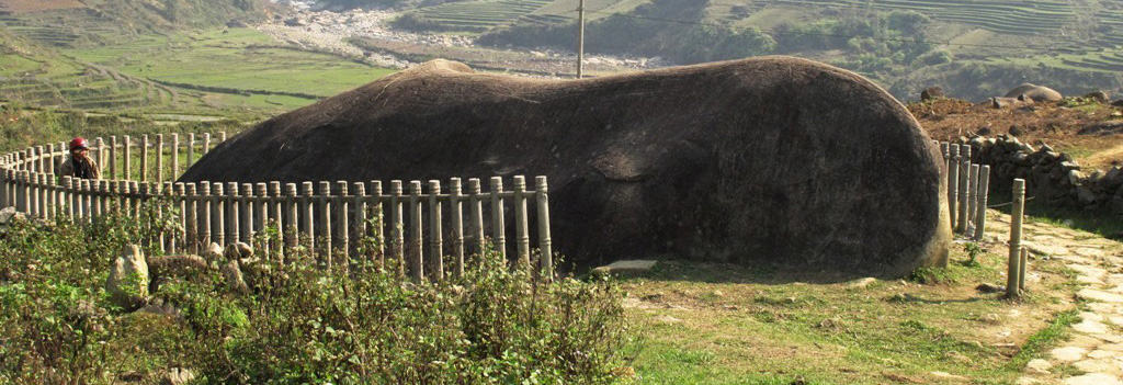 IMPORTANT NOTE: Sapa Ancient Rock Field is currently closed to the public until further notice. This closure is due to ongoing conservation efforts and site maintenance to ensure the preservation of this historical landmark. Walk through Muong Hoa valley of Sapa district, Lao Cai province, and you will stumble upon a scattering of large stones engraved with decorative patterns. The stones are made of quartz, sometimes over ten meters long, and are strewn about the sloping mountainsides, fields and streams. To this day, the creators of these mysterious engravings remain unknown. History of Sapa Ancient Stone Field Sapa Ancient Rock Field, situated in Muong Hoa Valley in the vicinity of respective communes Ta Van, Su Pan, and Hau Thao of Sapa District, is one of the valuable natural heritages. This destination is about 8 square kilometers in area and was recognized a national historical relic in 1994. In October of 2005, the Lao Cai Service of Culture and Information cooperated with EFEO for a long-term study of decoding the stone carvings. The research team took photographs of all the carved stones, using GPS to locate them and map their location on nepal papers. The arduous work of scaling mountainsides snf removing debris from stones could only be done during the dry season, from November to April.Doctor Philippe Le Failler, who directed EFEO, said that after three periods in the countryside the research team has stored 1,900 photographs and mapped about 100 carved stones in Hau Thao Commune to 1,321 sheets of paper. About one fourth of the documented stones were found recently. When analyzing these newly discovered stones, researchers must distinguish between original stones and recent creations. It is still too early to draw conclusions from EFEO’s research. It is obvious, however, that the handwriting and carved designs are rare. On these rock slabs, there are decorations such as houses of stilt, terraced fields, humanoid, and even the vestige of writings. However, it also has a wide range of vague decorations that countless researchers and visitors yearn to decipher. Stones and rocks in common are obviously senseless and inanimate things in nature. Nevertheless, the rock in Sapa Ancient Rock Field always brings a warm and cozy feeling. People here have venerated it as a saint with the ability to bless them with health, happiness, prosperity, and lush crops. Best Time to Visit Sapa Ancient Rock Field Ancient rock fields have a full range of nuances all year round. In spring, rock fields wallow in immense green rice fields, which reflects many tourists of rustic life. It turns to summer in which people harvest, so visitors easily take a panoramic view of yellow rice fields. Countless avid travelers are blown away when they see it. Needless to say, they quickly take out a camera and snap some memory photos. Even many adolescents post these photos on Facebook to share a sense of triumph. In winter, Sapa Ancient Rock Field is full of snow. There is nothing more romantic than going around snow-capped rice fields with your beloved person, hand by hand, shoulder by shoulder and enjoying the time together. Ethnic people do transplanting from March to May, so it is a good time for you to see the tableau in the rice paddy. The sound of adults talking and chatting, children giggling, birds singing in the trees makes the cheerful ambiance and diffuse a large space. The best time to visit Sapa Ancient Rock Field is between September and November when Muong Hoa Valley is suffused with the yellow color of ripe paddies. Viewed from above, the panorama of Muong Hoa Valley resembles an imposing and mysterious picture in the fairy tale. If Dalat is named a never land, then Muong Hoa Valley will be a fairy land. If you desire to see snow falling down from the sky, the great time to come is from December to February in the next year. A pile of branches of trees stripped of their leaves. Instead, white snowflakes cover the trunks and the ground as well. There is nothing more wonderful than eating baked sweet potatoes and walking on the snow. Highlights of Sapa Ancient Rock Field Although rock slabs are scattered at random, it seems that the arrangement was made by someone. The large stones are deeply carved with strange patterns: about 90 percent of the carvings are parallel lines, but there are also curves, human-like shapes, and what appears to be handwriting. In recent years, these stones have increasingly attracted tourists, as Muong Hoa is easily reached from the town of Sapa. These patterns, more than eighty years ago, were researched by Western scientists. In August of 1925, Professor Victor Goloubew at EFEO was the first to study the Muong Hoa stones. Most of Goloubew’s findings were inconclusive. Based on Goloubew’s documents, in 1938, anthropologist Paul Levy compared the carved patterns with ethnographic studies of carvings from other parts of the world. Levy found similarities with the artwork of natives from New Guinea, Australia and Taiwan. At that time, only thirty large blocks of stones were studied. But since then, more and more carved stones have been discovered. In 1992, another carved stone field was found in Ma Tra Village, about eight kilometers from Muong Hoa. According to statistics by the Lao Cai Service of Culture and Information, the number of carved stones now totals 159. In the recent past, Vietnamese archaeologists, social anthropologists, and researchers began to pay attention to these strange rawings. Nobody, however, has found concrete proof of the stones’ origins. The artists behind the drawings still remain anonymous, just as the meaning behind the drawings still remains a mystery. The current inhabitants of Muong Hoa such as the H’mong, Giay, and Dao have occupied these valleys for only a few centuries, but the stone carvings date further back. According to the Vietnamese Institute of Historical Research, these patterns have existed for at most nine hundred ye