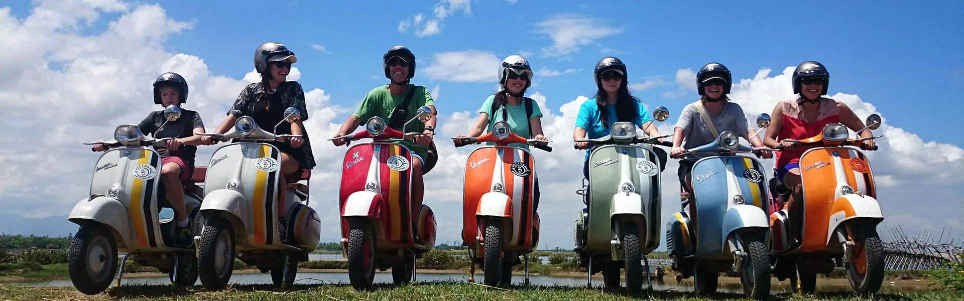 Entry ticket Transfers Accomodation Flights Meals Tour guide Visa Included destination(s): Hue, Thanh Toan village, Farming Tools Museum Start from: $76 /person Request this tour Request this tour Your name: Contact email: Phone: Nationality: Select one American Argentina Australia Brazil Canada Chile China Colombia Croatia Cuba France Guam Hong Kong Hungary Iceland India Indonesia Iran, Islamic Republic Of Iraq Ireland Israel Italy Japan Korea Lao Macao Other Number of participants: Start day: Special note (optional) Send request 0.5 day Save to wishlist Saved to wishlist About the Tour Take delight in sitting on the back of a Vespa scooter for a mesmerizing ride through the scenic countryside of Hue. This allows you to get to know more about the natural beauty of Vietnam. This Hue Vespa Tour will take you on small countryside roads to the parts of Hue that most tourists don’t see, like lichen-covered chapels, communal houses, lively village markets and immense rice paddies with water buffaloes, to name a few. You will get to know peasant family’s life and also the culture in Hue. Get yourself prepared for a variety of sightseeing and photo opportunities. Highlights Discover the hidden charm of Hue in an impressive way - on back of a Vintage Vespa! Get an insight into the rural life of Northern Vietnam through stops, visits and stories. Take a close and lively look into village markets, communual Visit a peasant family of which many generations make sticky-rice traditional cake "Banh Chung" A quick glimpse of Farming Tools Museum to understand more about wet-rice cultivation and local customs of farming Detailed Itinerary Our guide and Vespa driver pick you up at hotel around 07:30 am. We escape the city by following the small roads to the countryside. On the way to local markets, we will go through a lot of communal houses and family temples. The tour guide will explain you about Vietnamese villages and such places of worship. After that, we take a look at local market where most female villagers come every day to buy and sell their produce. Then, visit a pagoda and a local family. The three-generation family inherits a traditional job of making sticky-rice cakes well-known as “Banh Chung – Banh Tet” in Vietnam. You can taste the cake while listening to their stories and having a cup of green tea. After riding to Thanh Toan village and stopping by the Farming Tools Museum for a glimpse of local farming customs, we have a soft drink with local snack, taste the sticky-rice cake from the local family. Getting back to your Vespa scooter and returning to your hotel in the city. Tour will end at approximately 11:30 AM. Inclusions English speaking tour guide Entry Fees (if any) Private land transfer Exclusions Shuttle bus transfer Travel Insurance Domestic & International flight (if any) Vietnam visa arrangement Tips and Gratuities Personal expenses Accommodation Meal(s) as indicated Special Notes Dress code is casual with comfortable athletic clothing, hat. Entry ticket Transfers Accomodation Flights Meals Tour guide Visa Included destination(s): Hue, Thanh Toan village, Farming Tools Museum Start from: $76 /person Request this tour Request this tour Your name: Contact email: Phone: Nationality: Select one American Argentina Australia Brazil Canada Chile China Colombia Croatia Cuba France Guam Hong Kong Hungary Iceland India Indonesia Iran, Islamic Republic Of Iraq Ireland Israel Italy Japan Korea Lao Macao Other Number of participants: Start day: Special note (optional) Send request